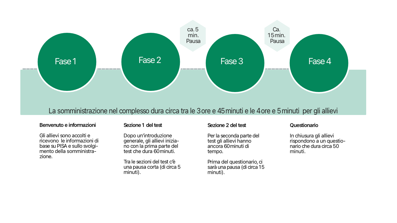 Dovrai completare gli esercizi di matematica, lettura e scienze naturali, così come un nuovo ambito innovativo, l’Apprendimento nel mondo digitale (LDW-Learning in the Digital World). Gli esercizi sono divisi in due parti, con una breve pausa tra l’una e l’altra. Alla fine, ti verrà richiesto di compilare un questionario con domande su di te, sulla tua famiglia, sulla tua casa e sulle tue esperienze scolastiche. Le risposte del test e le risposte del questionario saranno ovviamente trattate con la massima riservatezza.