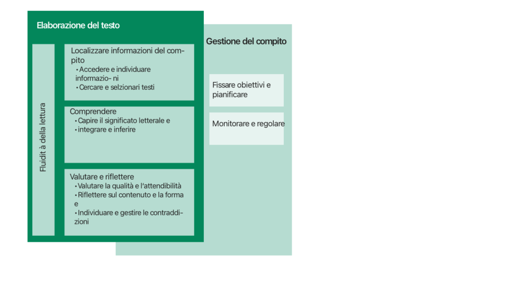 Per la creazione degli esercizi del test, gli esperti si sono basati sul quadro concettuale per la lettura. Questo quadro di riferimento per la lettura è stato revisionato per l’ultima volta per l’indagine PISA 2018 e in particolare è stato adattato ai cambiamenti significativi nelle abitudini di lettura degli ultimi anni dovuti all’uso dei media digitali (smartphone, computer, ecc.).