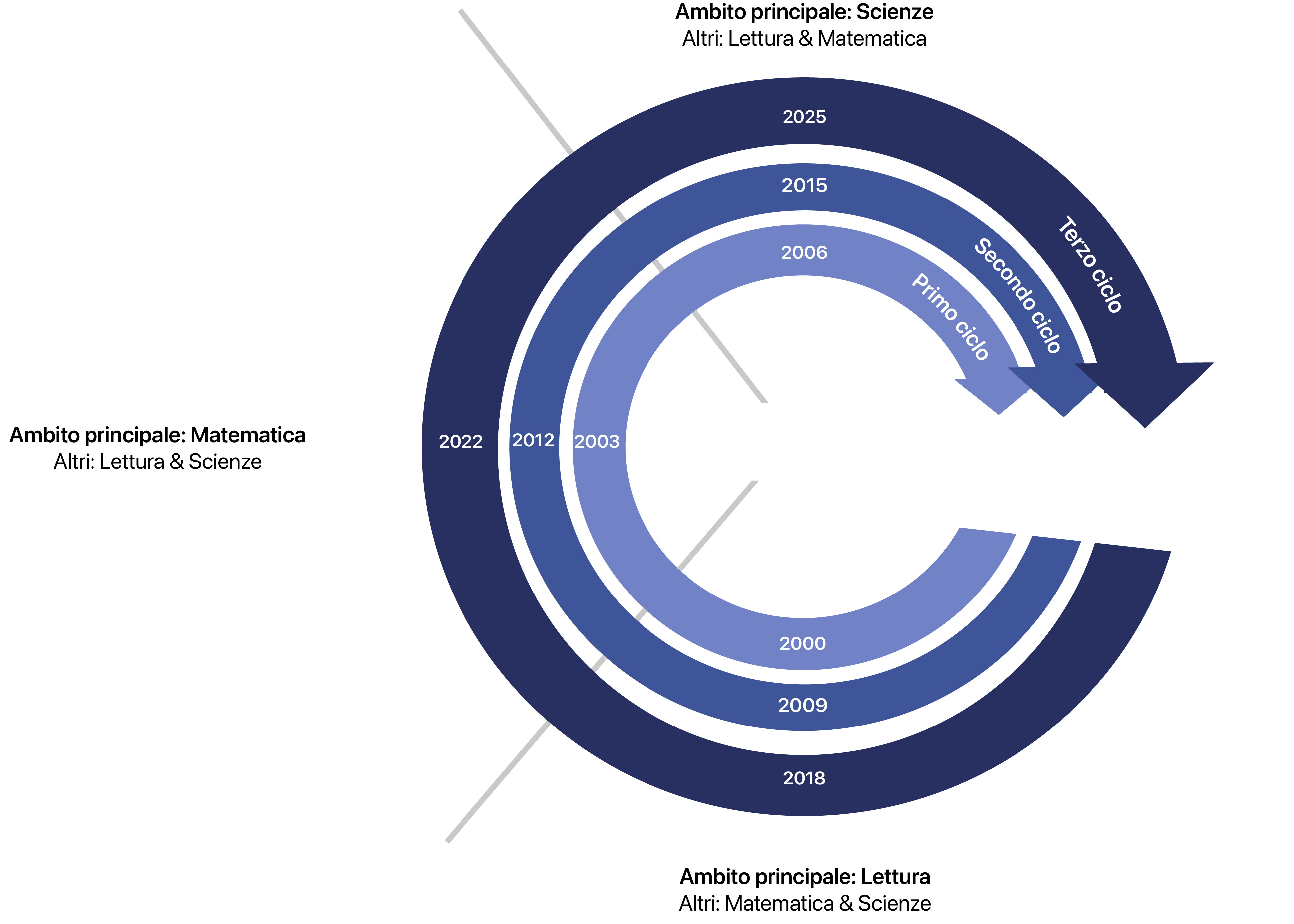 Il test PISA viene generalmente svolto ogni tre anni. Sono valutate le competenze di tre ambiti di competenza: lettura, matematica e scienze. Ogni tre anni, uno dei tre ambiti di competenza costituisce l’ambito principale ed è testato in modo più approfondito.