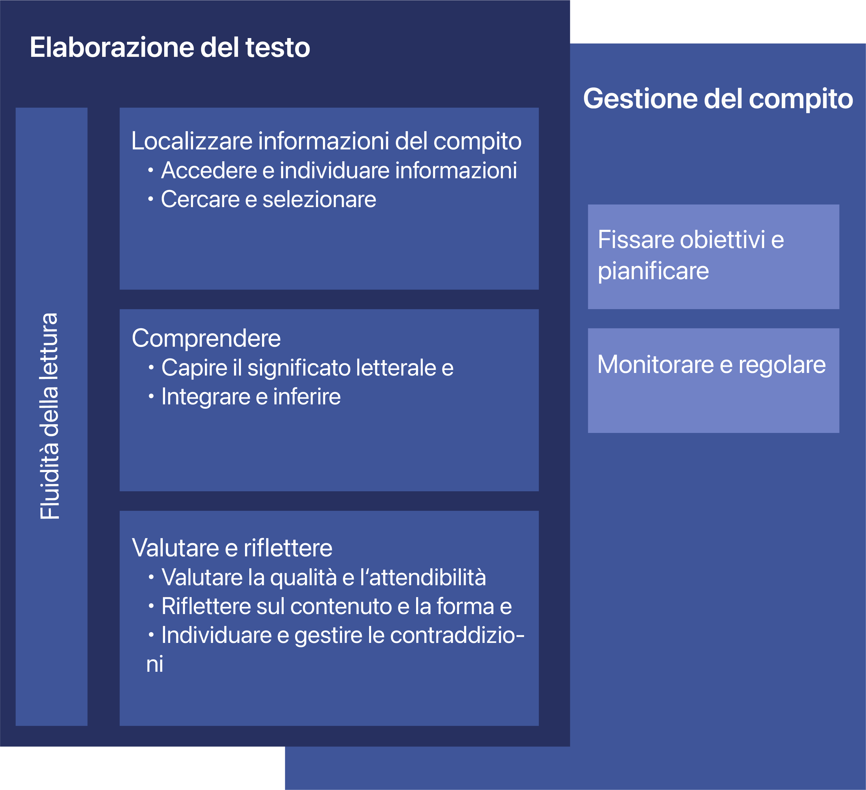 La seguente figura mostra i processi cognitivi rilevanti per la valutazione della literacy in lettura.