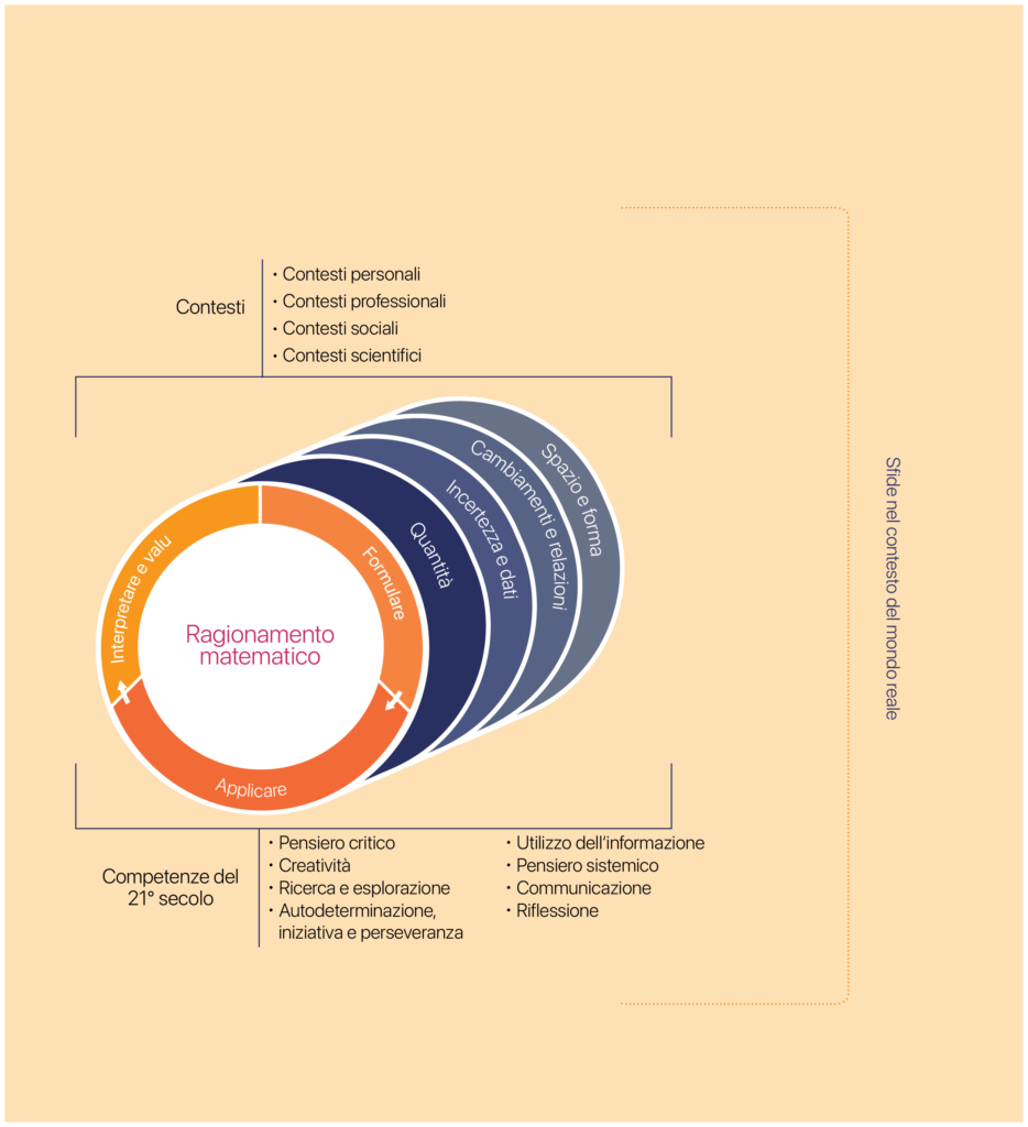 La seguente figura mostra i contesti e le competenze rilevanti per la valutazione della literacy in matematica.