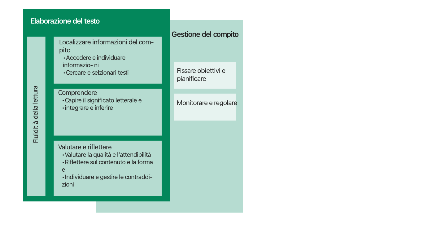 La seguente figura mostra i processi cognitivi rilevanti per la valutazione della literacy in lettura.