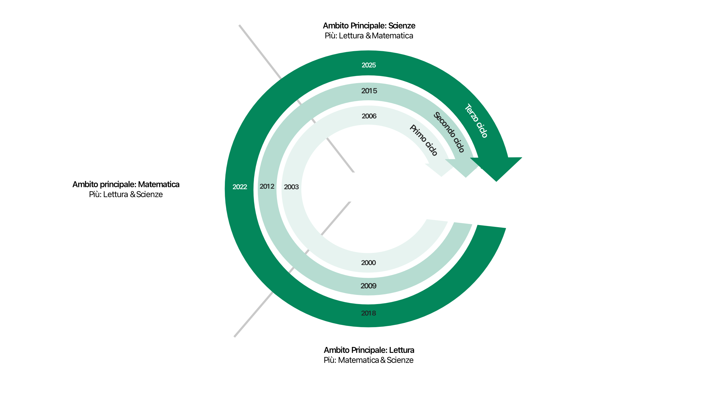Nota: in PISA 2025, viene esaminato anche l’ambito innovativo “Apprendimento nel mondo digitale” (LDW – Learning in the Digital World).